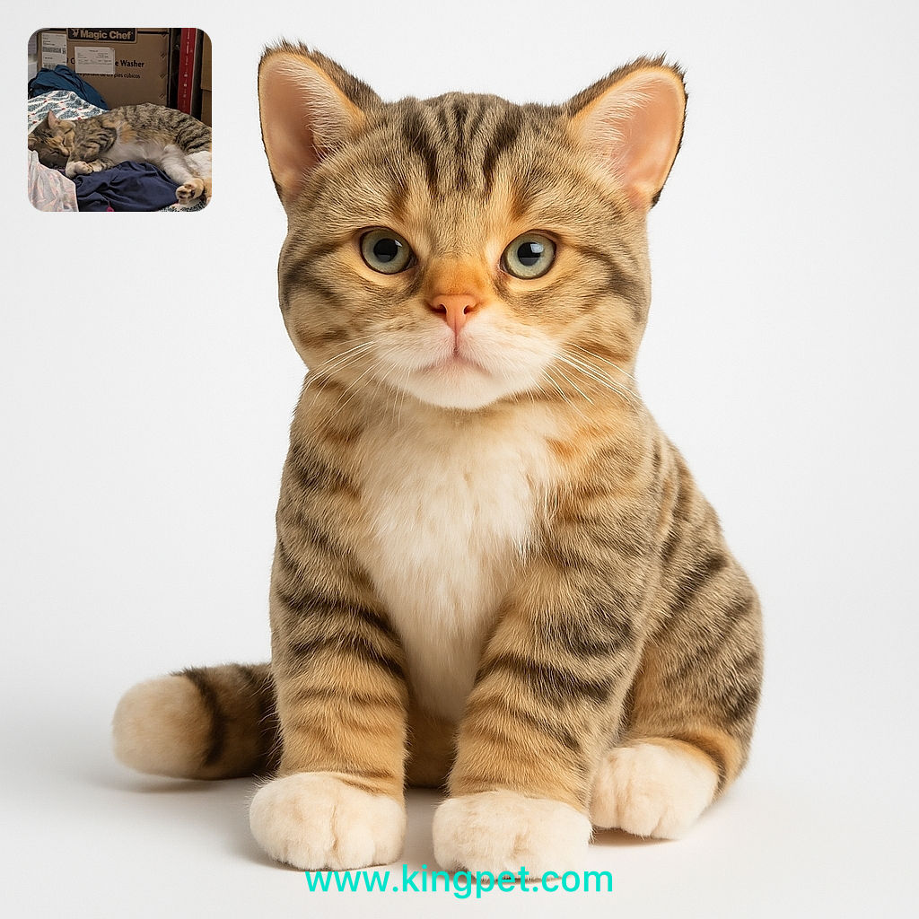 • A majestic tabby cat confidently strides towards the camera, its green eyes piercing and focused. The background is softly blurred with natural greenery and earthy tones, highlighting the cat as the clear star of this outdoor portrait.